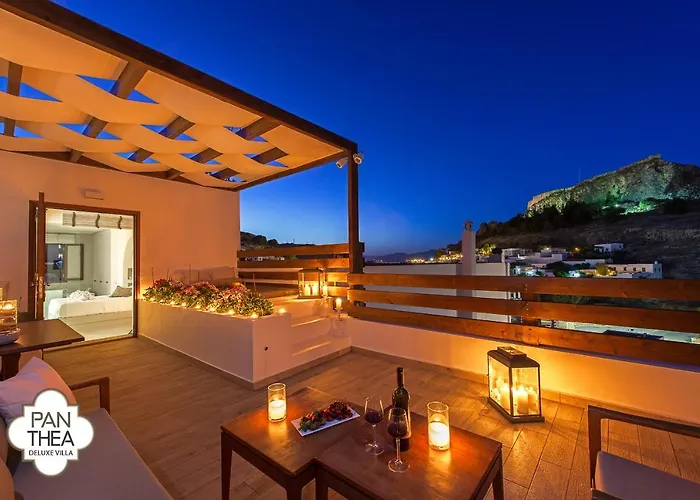Panthea, Lindos Akropolü'dan arabayla 5 dakikalık uzaklıkta bulunur ve ücretsiz otopark, antialerjik odalar, jakuzi gibi kolaylıkları bulunan konaklama olanağı sunmaktadır. Villada güneşlenme terası, güneş terası mevcuttur.